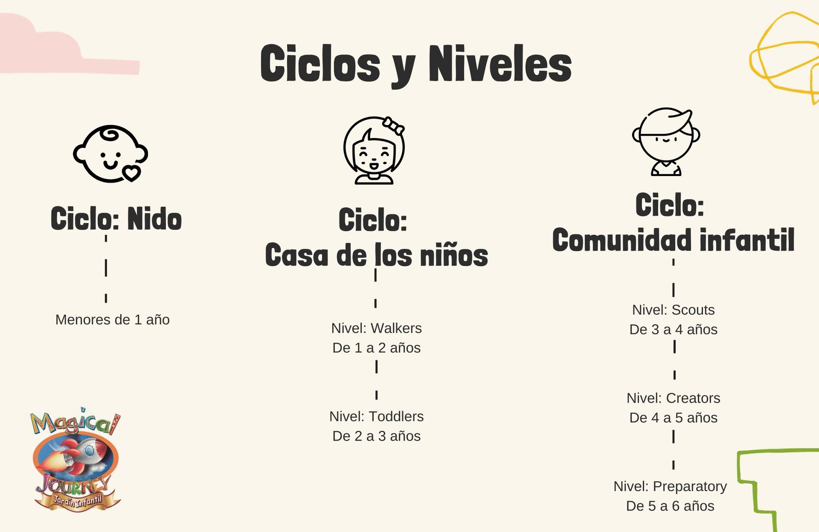 Somos un Jardín Infantil Montessori donde los niños a través del juego simbólico, la creatividad y la exploración, desarrollan habilidades de pensamiento critico, socialización, resolución de problemas y elevan los niveles de amor propio, generando seguridad de sí mismos mientras respetan las diferencias de los demás.